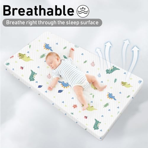 Pack and Play Mattress 38"x26" Portable Breathable Pack N Play Mattress for Baby and Toddler - Infant Mattress Waterproof Washable Animal Cover with Soft Comfortable Memory Foam